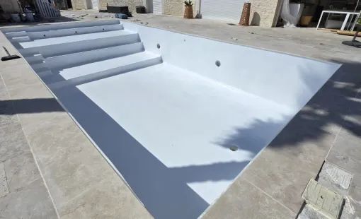 Renovation d'une piscine béton pour une Étanchéité polyester sur Fréjus teinte gris claire. Travail de précision et qualité  Vous souhaitant une agréable visite, si vous avez besoin d'un complément…