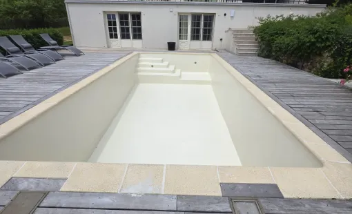 Superbe réalisation en eau, Étanchéité polyester. Revêtement piscine.
